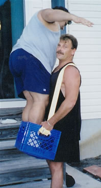 Increases lifting capacity while HANDI-STRAPS™ will virtually adapt to any exercise of lifting or pulling by hand engagement. From shoveling to picking up objects to dragging or pulling objects; HANDI-STRAPS™ will perform at optimum levels. The rubberized strap extension extends just past the fingers and is to be used to secure objects and engage the HANDI-STRAPS™ apparatus. This rubberized strap extension reduces hand and finger strain as well as protect the hand from abrasives or sharper objects while maximizing grip ability. The strap apparatus is fastened by a loop in which the hand, excluding the thumb, is inserted. This loop is padded and includes a piece of very durable webbing to protect the hand from injury, such as a hard surface collision. "HANDI-STRAPS™ is like adding four arms to the body but distributed to the entire upper body." "These 'arms' cannot be hurt; they are made of webbing." See us on the cover of Occupational Health and Safety magazine |